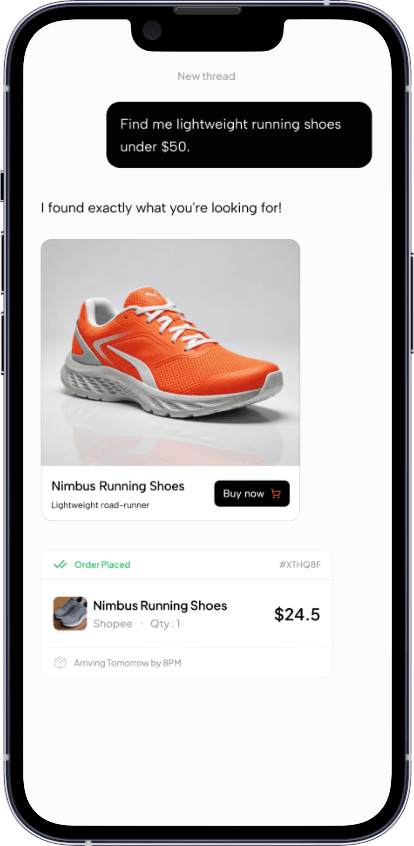 Enable your AI app to make secure, encrypted payments using wallets or tokenized cards, in minutes.